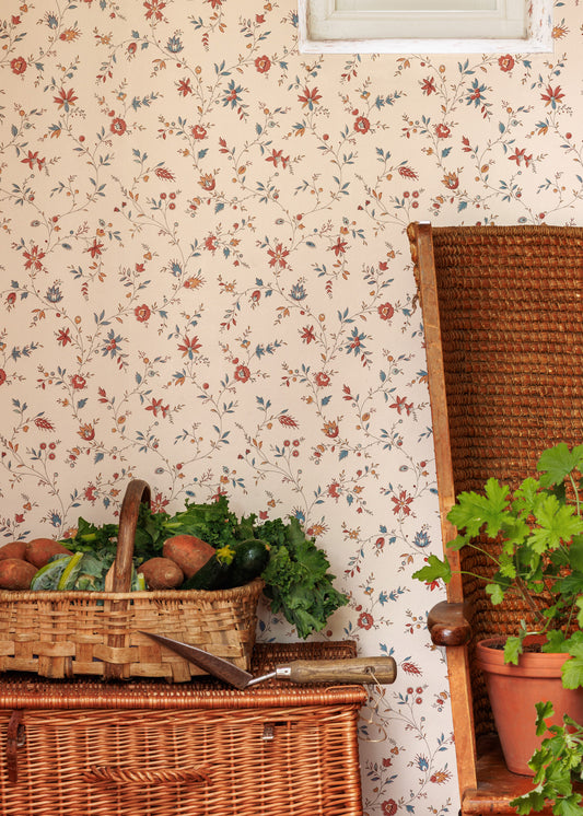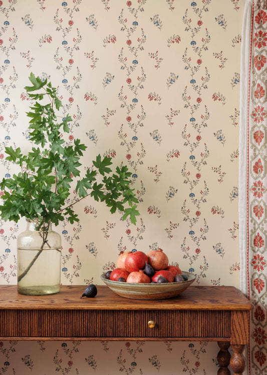 Indienne Vine Wallpaper ~ Ruby / Indigo