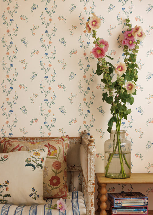 Indienne Vine Wallpaper ~ Marigold / Cornflower