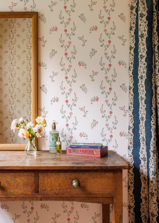 Indienne Vine Wallpaper ~ Crimson / Rose