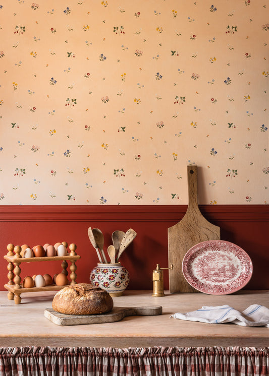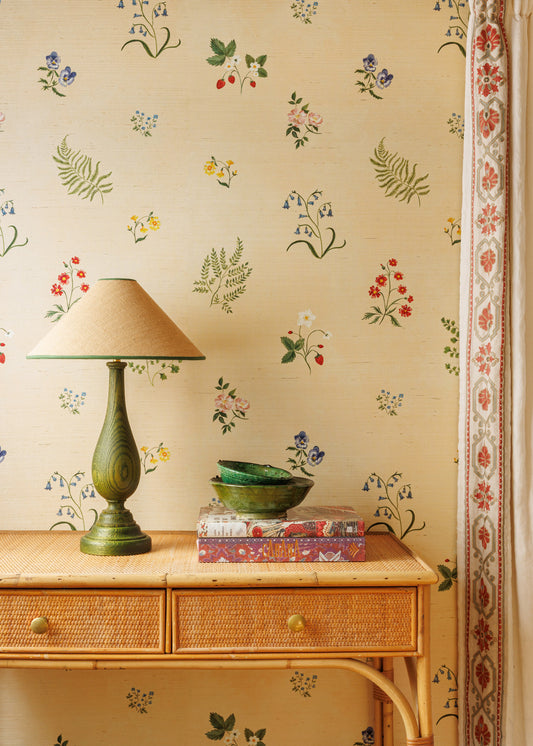 Herbarium Wildflower Grasscloth Wallpaper ~ Blush