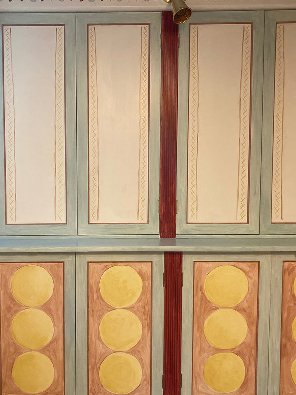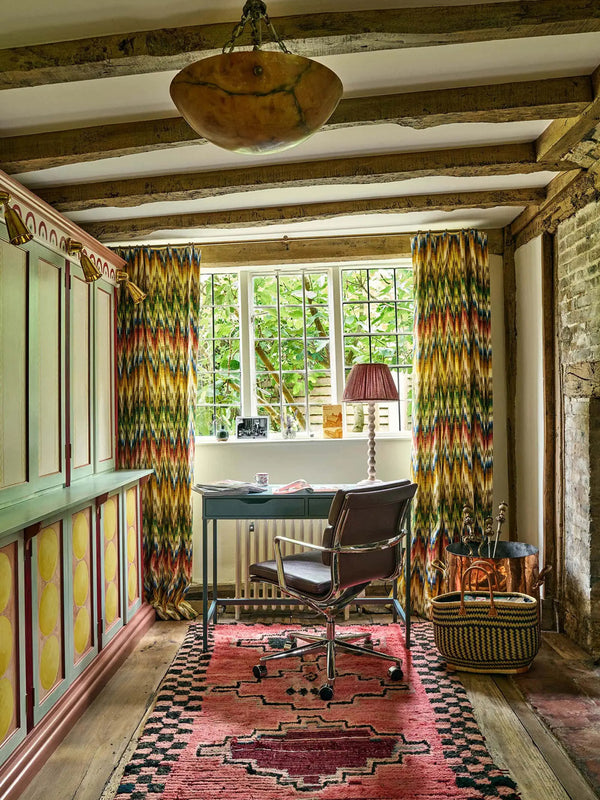 The scallops and circle motifs of the Bloomsbury Group lend a colourful playfulness to any room scheme, and are a great way to turn practical solutions into a characterful decorative feature of room.