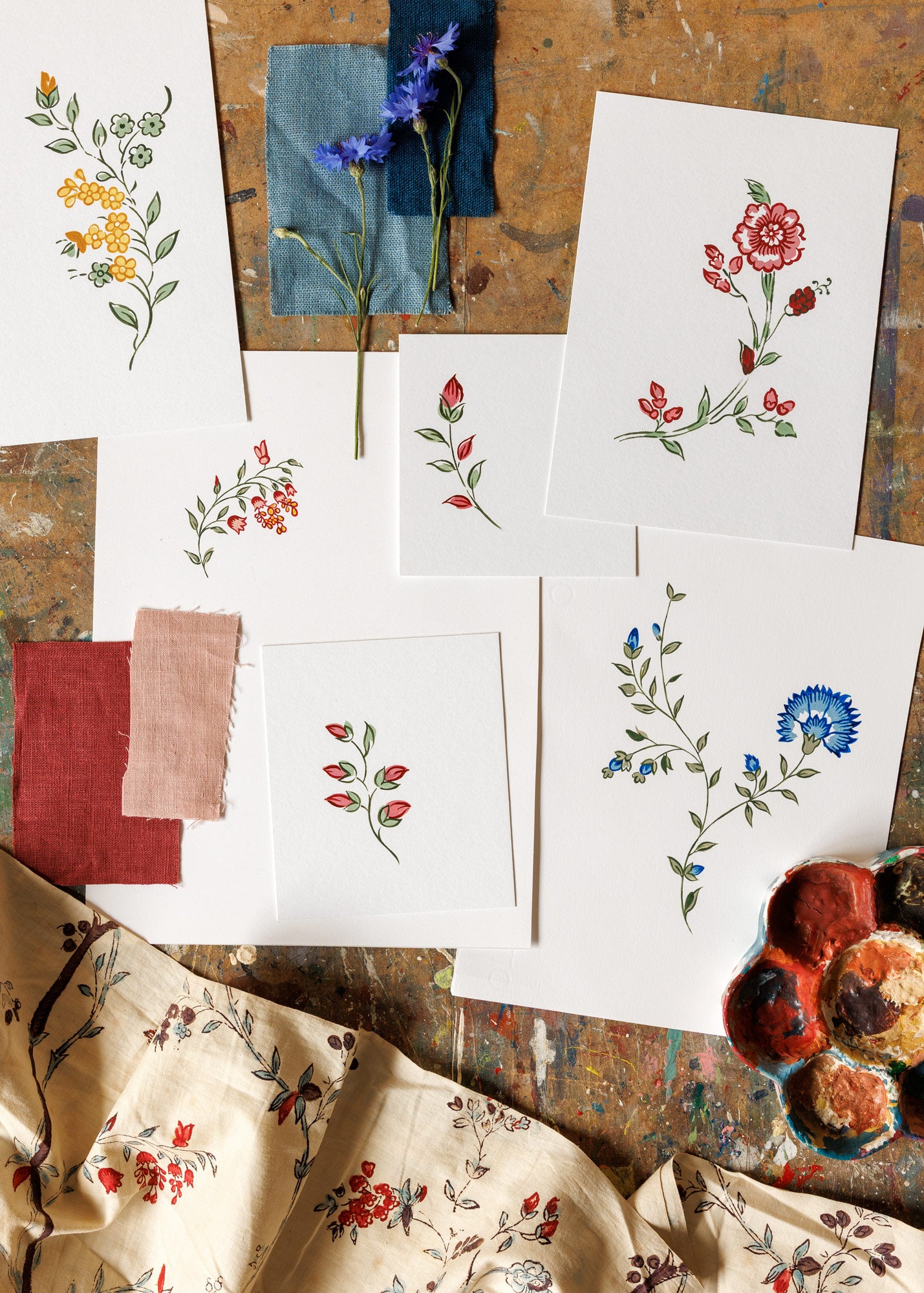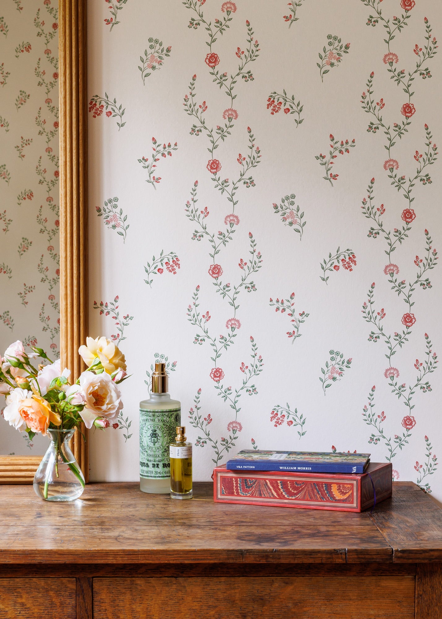 Inspired by motifs found on an 18th century fabric remnant, Indienne Vine draws inspiration from Indian painted bedspreads, or palampores, of the 18th and 19th century. Using a series of hand-painted florals, delicate vines and posies create a contemporary stripe. Indienne Vine is available in three colourways, each with its own distinct character.