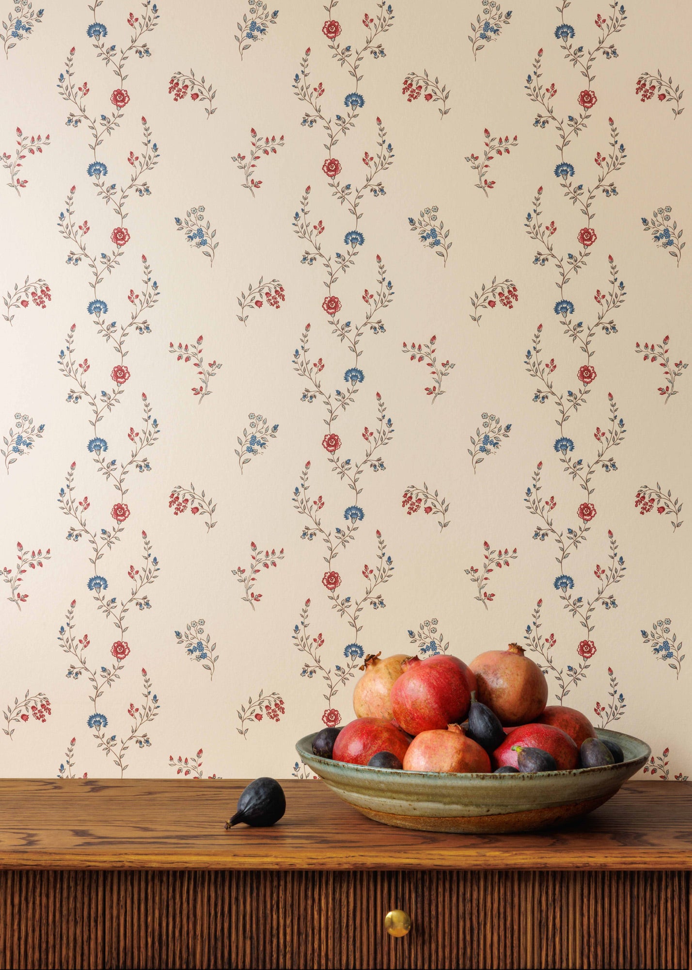 Indienne Vine Wallpaper ~ Ruby / Indigo